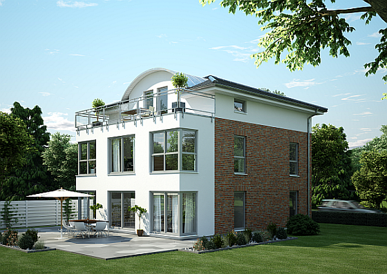 - Dieser großzügige Stadtvillen-Entwurf von OKAL lässt den Bauherren alle Freiheiten: Ob als Einfamilienhaus mit sehr viel Platz, als Generationenhaus oder zum Wohnen und Arbeiten unter einem Dach. Immer mehr Bauherren bauen ihr OKAL Haus ganz nach ihren individuellen Vorstellungen. (Abbildung: OKAL Haus GmbH)